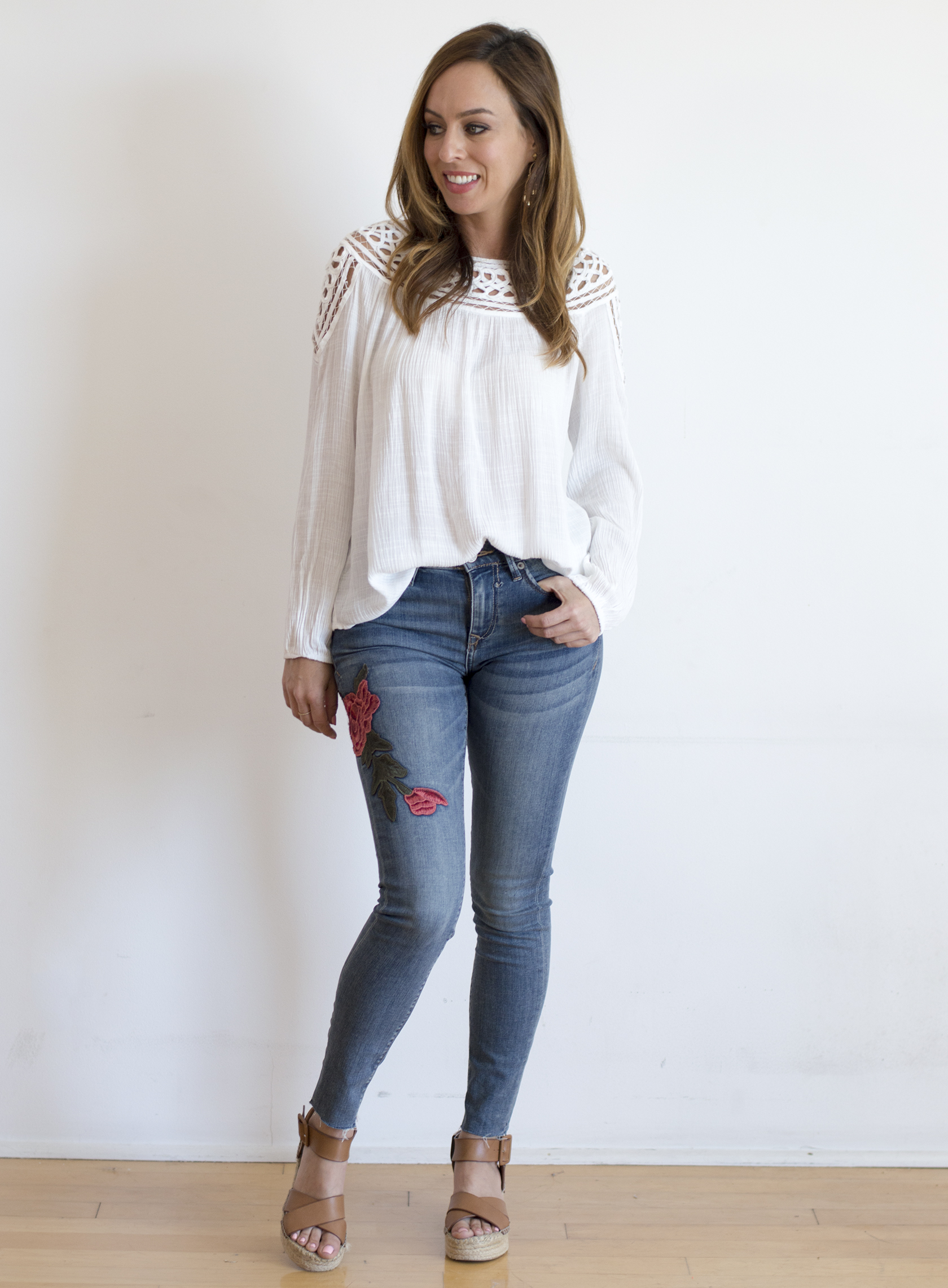 {Exposed Button: MadewellĀ jeans Ā & Bebe top / Embellished: HudsonĀ jeans & Fifteen Twenty top / Cropped Flare: HudsonĀ jeans & Willow & Clay top / Embroidered: ExpressĀ jeans/ Vintage: AGoldeĀ jeans & Cooper & Ella top}