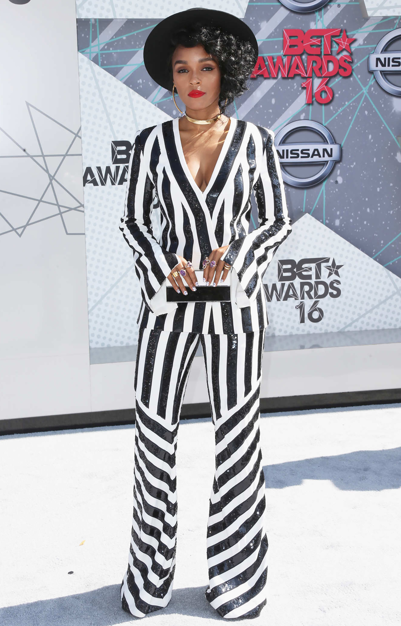 I originally was going to pair my striped pants with a black top but Janelle Monae inspired me to be more daring. So instead, I brought out an old crop top and mixed my stripes. I used the lines to my advantage: vertical stripes make you look taller while the horizontal stripe of my top helps widen a smaller chest. Then instead of a bright red lip, I added a pop of color with my clutch.