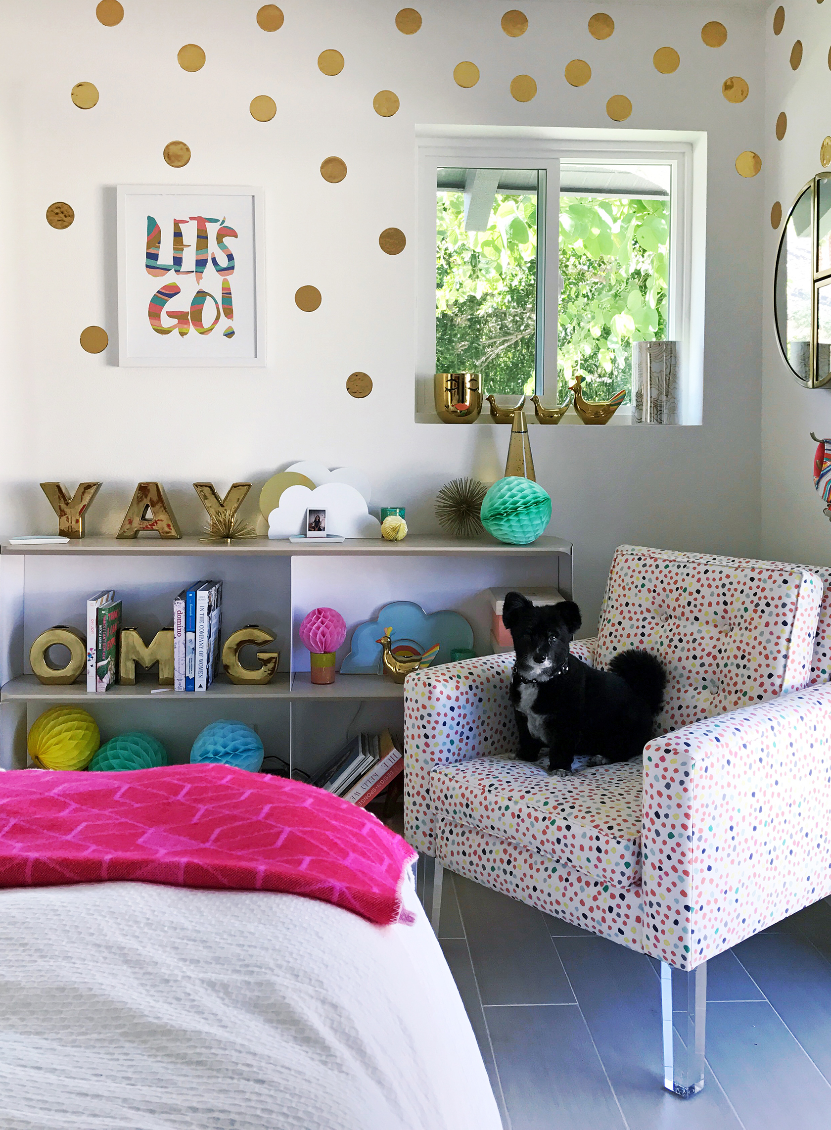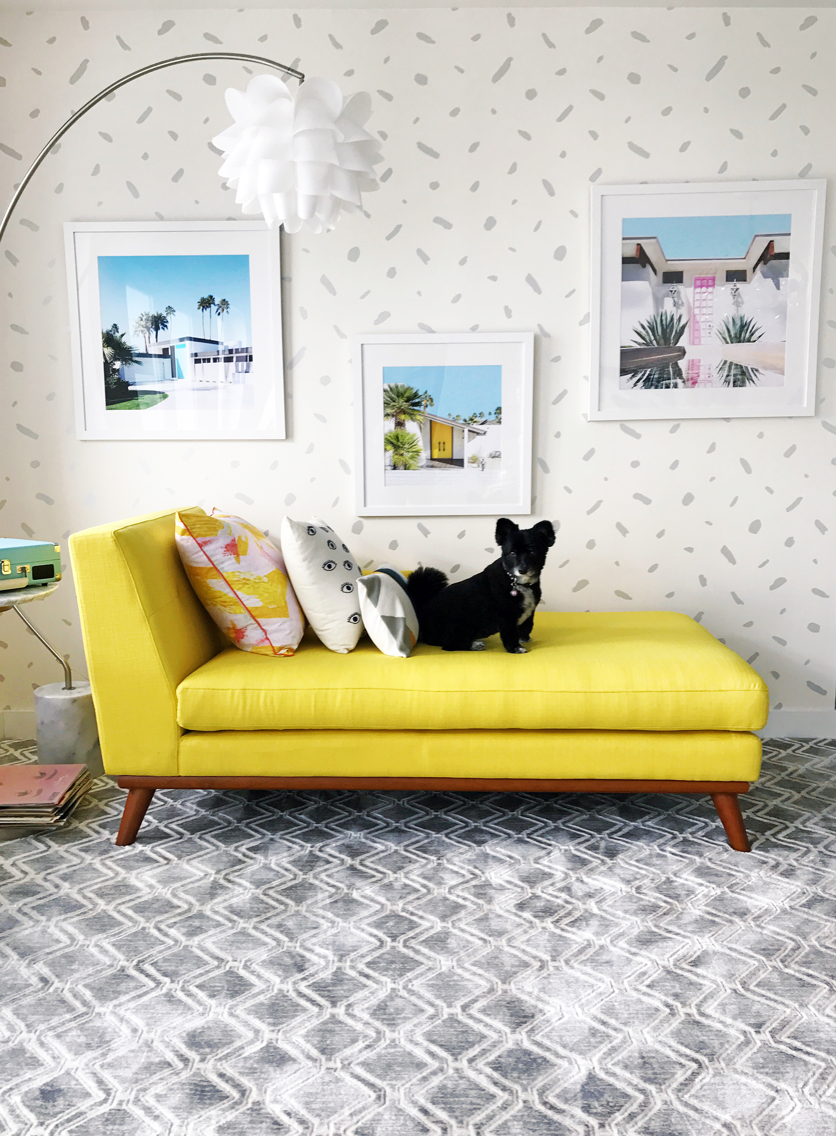 Hi Sydne Style fam! Bunny Bell, here. I’m so excited to get to do my first blog post! I’ve been traveling with Mommy so much while our home gets renovated. This weekend was so cool! We stayed with Auntie Kelly in Palm Springs. She gave us the kid friendly room, designed by her friend Joy Cho of Oh Joy. It even came with a dog leash!