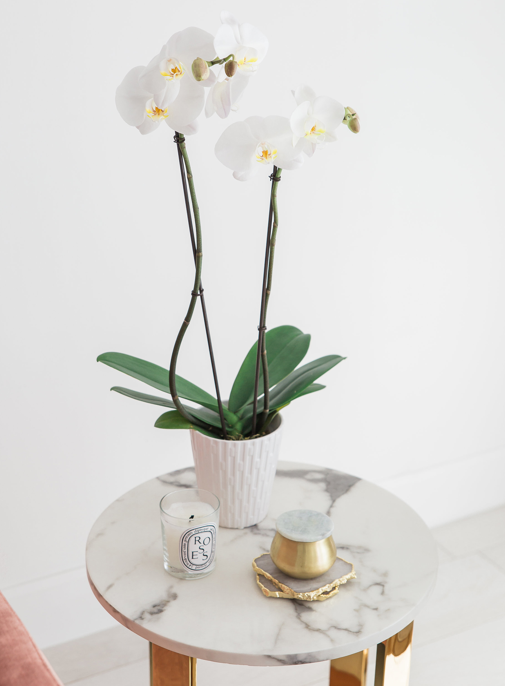 Seriously, that’s it. You simply place ice cubes onto your orchid plant one to two times per week. It acts as a drip system and keeps them alive and beautiful. You want to place the ice on the soil, not the leaves. And honestly, I don’t remember to do it consistently. It’s usually when I’m taking something out of the freezer and I think, oh I should “water” my orchids today.