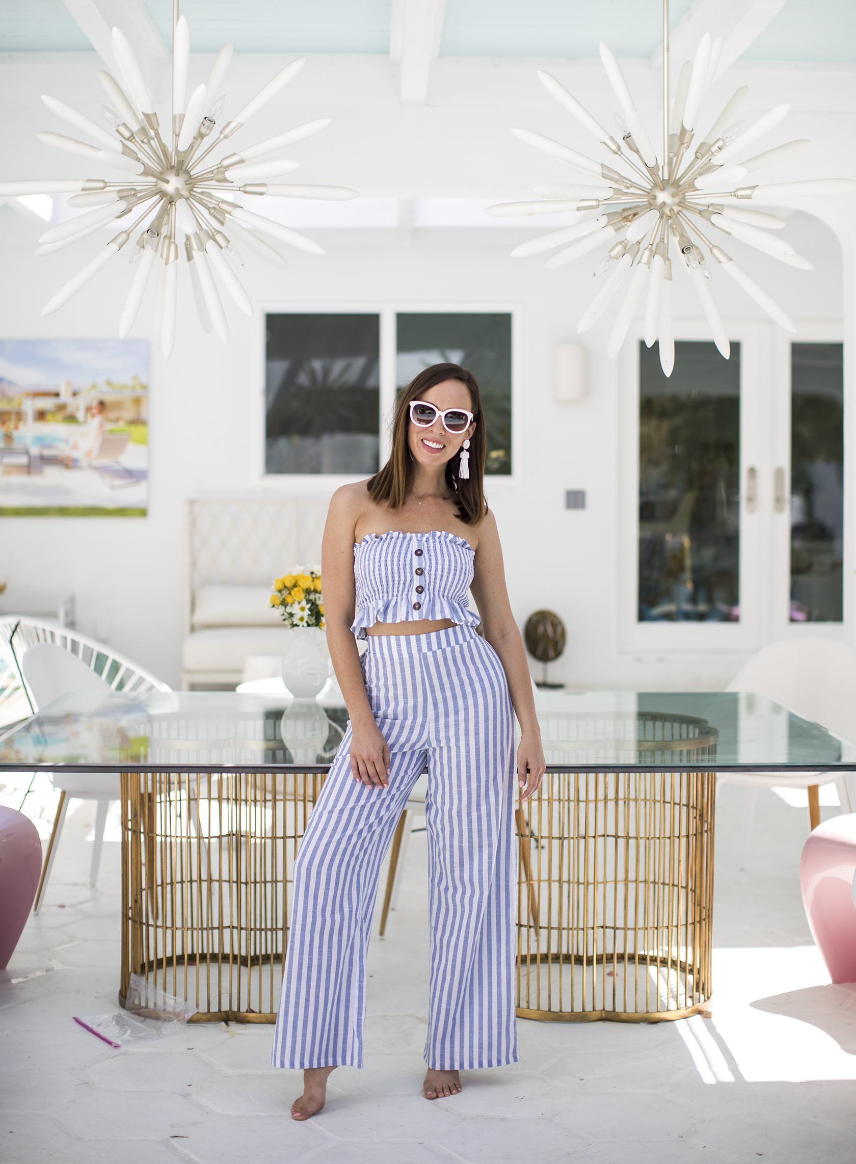 When it comes to what to pack for Palm Springs, I was all about stripes… and so were my friends! I brought along two different stripe outfits. The first was a striped pant set (it’s on sale for only $20!). The airy cotton kept me cool in the desert heat. Plus, I was able to mix and match the set, pairing the crop top with shorts and the pants with a lightweight tee when we lounged around Kelly’s house.