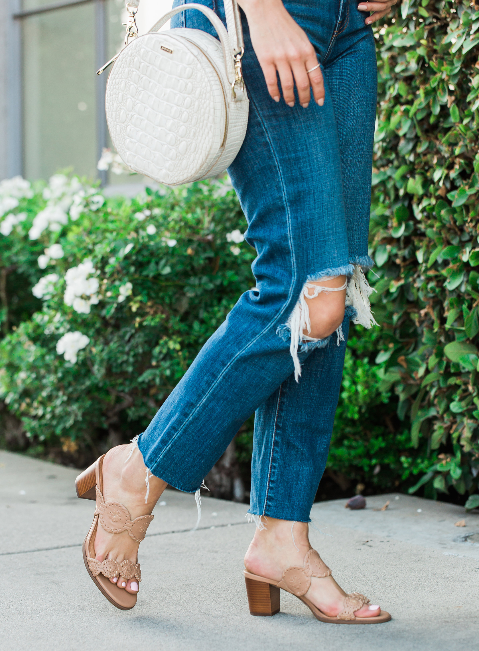 Every season I like to have a fashion uniform for days I don’t feel like putting much effort so I like to have my go-to summer weekend outfit ideas on-hand. My casual weekend uniform has consisted of basically the same three pairings: a lightweight button-down shirt, high waist jeans or denim shorts and nude sandals (either flat or with a block heel). When you have a go-to uniform, it makes getting dressed a breeze. You simply throw on the same pieces in different colors or fabrics and always feel confident and comfortable.