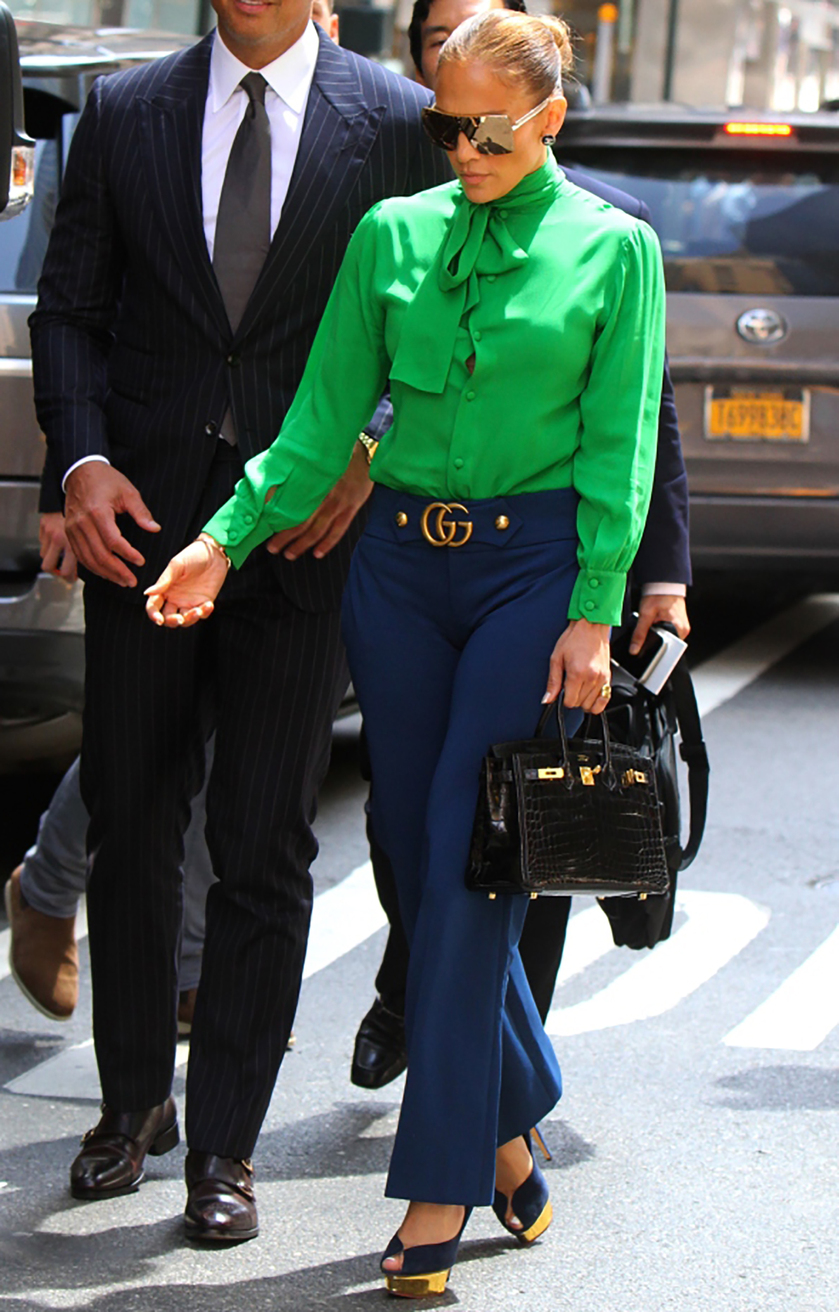 I’m so happy colorblocking is back. I’ve always loved the trend. It’s so fun to combine bold color combos to create unique looks. Recently, I was inspired by the blue and green colorblocking combinations I’ve been seeing on celebrities like Joan Smalls, Blake Lively and Jennifer Lopez (how gorgeous is JLo’s Gucci blouse?!)